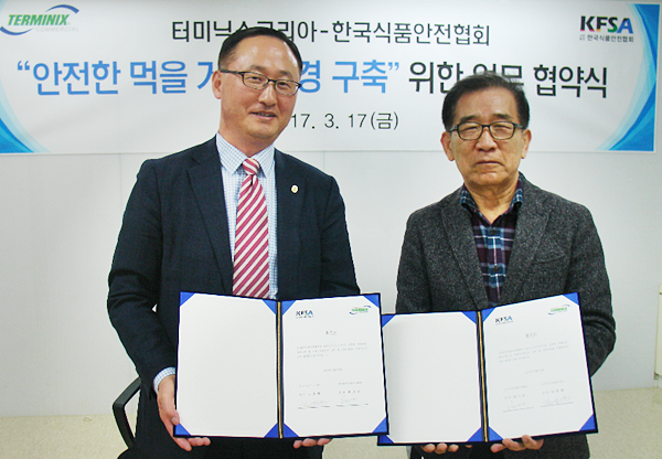 한국식품안전협회(회장 임기섭)와 터미닉스코리아(대표 김호영)는 17일 안전한 먹을거리 환경 구축 및 식품안전 정보 교류를 위한 업무협약을 체결했다.