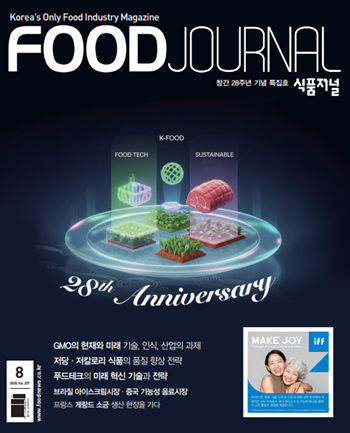 식품저널 창간 28주년 기념 특집호 2025년 8월호가 나왔습니다. 8월호는 새 정부 출범과 함께 유전자변형생물체(GMO, Genetically Modified Organism) 표시 정책 방향에 대해 식품산업계의 관심이 고조되고 있는 가운데, 지난 7월 2일 광주 김대중컨벤션센터에서 열린 2025 한국식품과학회 국제학술대회 ‘GMO의 현재와 미래: 기술, 인식, 산업의 과제’ 세션에서 발표된 주요 내용과 토론 내용을 중심으로 GMO의 현재와 미래, 국제 동향을 다뤘습니다. 8월호는 또, 2025 한국식품과학회 국제학술대회에서 발표된 다양한 최신 연구내용을 상세히 실었습니다.