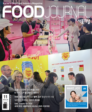 식품저널 2025년 11월호가 나왔습니다. 식품저널은 (재)식품안전상생재단과 함께 10월 30일 코엑스 컨퍼런스룸에서 ‘식품안전관리 선진화를 위한 K-HACCP 발전 방안 세미나’를 개최했습니다. 하반기 국내 최대 규모 종합식품전시회인 푸드위크 코리아(2025.10.29~11.01) 기간 중 열린 이날 세미나에서는 K-HACCP 글로벌 도입 방안부터 G-HACCP 도입에 따른 산업계 영향과 대응 전략까지, 식품안전관리 분야의 핵심 이슈를 심도 있게 다뤘습니다. 11월호는 세미나 주제 발표 요지와 토론 요지를 정리해 실었습니다.