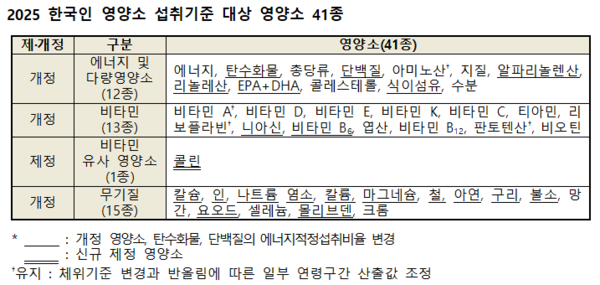 보건건복지부는 국민의 건강 증진에 필요한 영양소 41종의 적정 섭취 기준을 담은 ‘2025 한국인 영양소 섭취기준’을 개정, 배포했다.