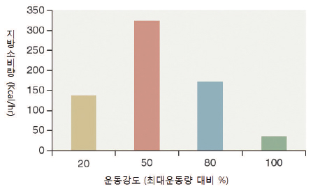 따라서 지방을 연소시키려면 적당한 운동 강도로 유산소 운동을 해야 하는데 이때의 적합한 수준은 최대 운동강도의 20~40% 수준인 운동이며, 이러한 수준의 운동은 빨리 걷기, 가벼운 조깅 등이 있다.